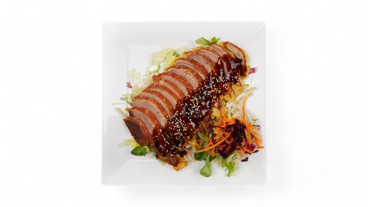 kačacie mäso, hlávkový šálat, sézam, teriyaky omáčka