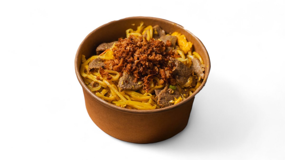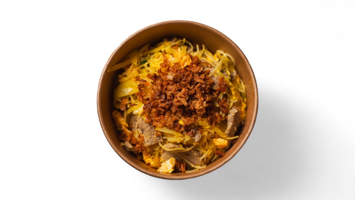 na výber: kuracie mäso, hovädzie mäso, krevety, tofu + široké ryžové rezance, kuracie mäso, sezónna zelenina, sušená cibuľa