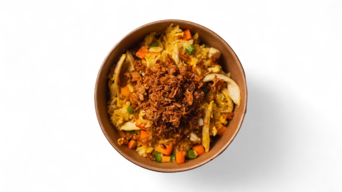 jazmínová ryža, kuracie mäso, sezónna zelenina, sušená cibuľa