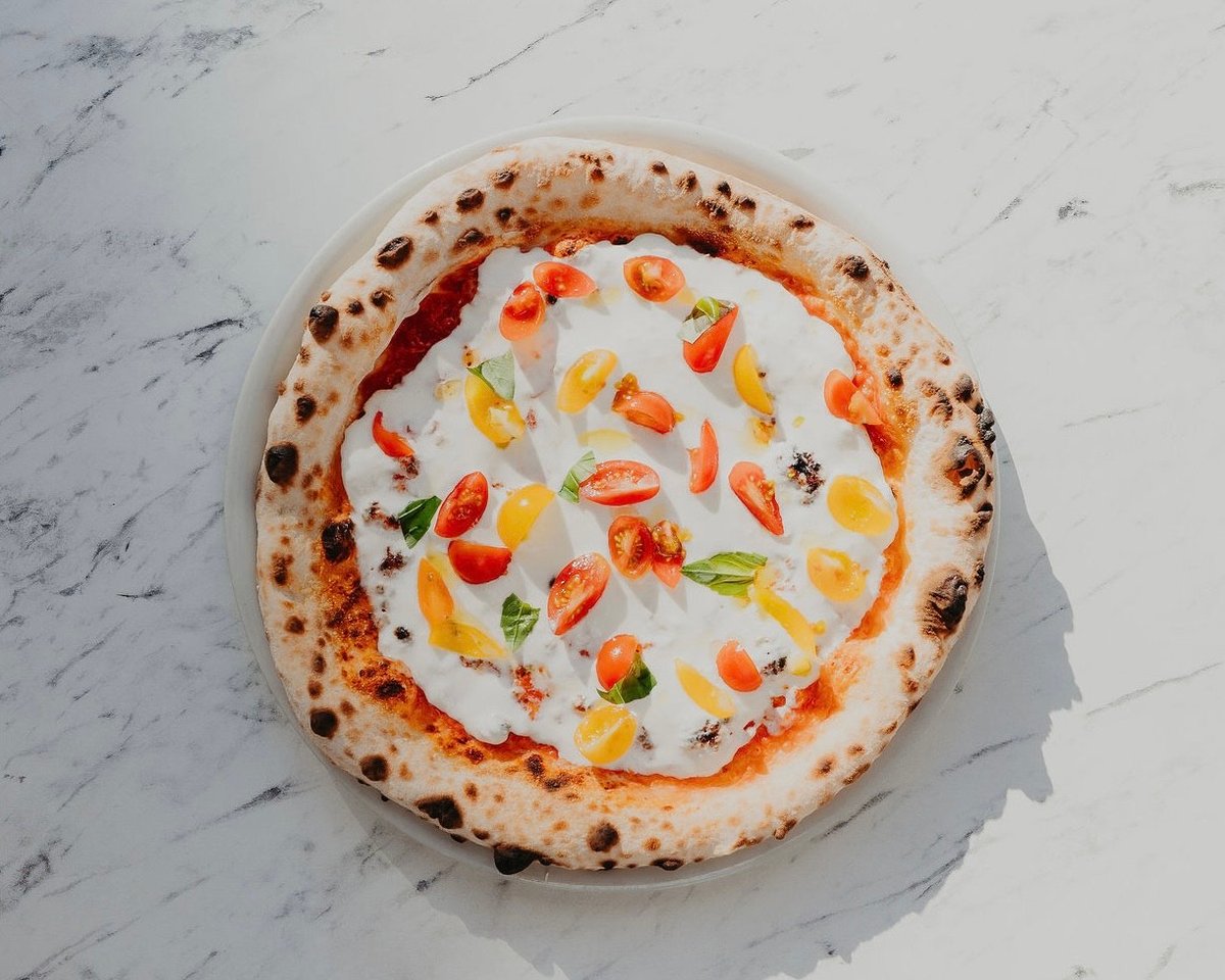 paradajkový základ San Marzano, parmezán, Stracciatella di bufala, cherry paradajky, olivový olej, bazalka 400g / obsahuje alergény: 1,7