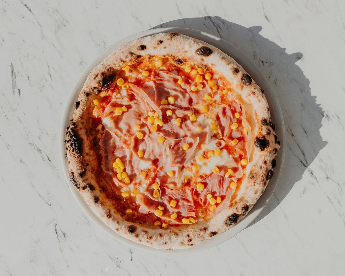 paradajkový základ San Marzano, Prosciutto Cotto, mozzarella fior di latte, maslová cukrová kukurica 400g / obsahuje alergény: 1,7