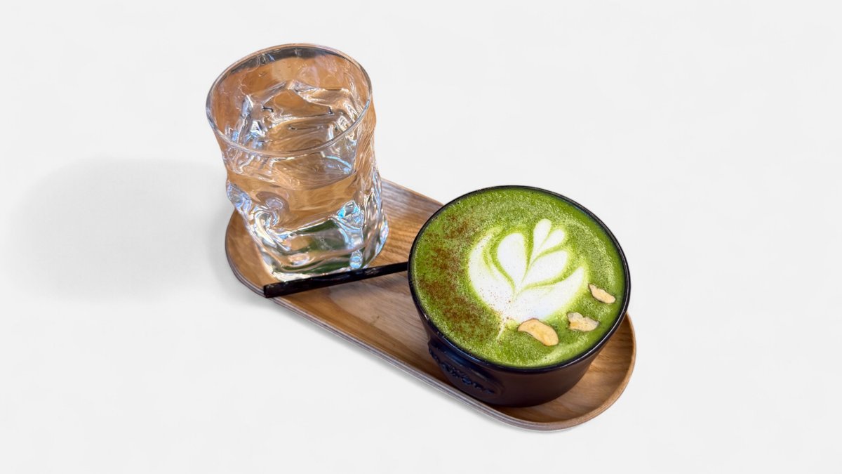 Kokosová voda v kombinácií s našľahanou matchou. Obsahuje: matcha, kokosová voda, rastlinná smotana