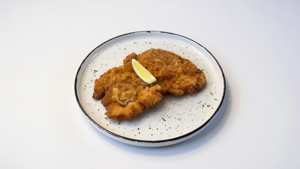 Veľký vyprážaný bravčový rezeň z krkovičky v marináde z pečeného cesnaku a kyslej smotany 220 g Alergény: 1,3,7