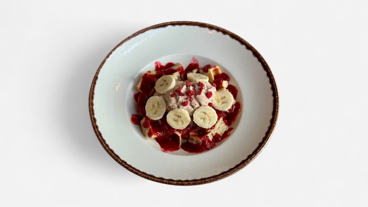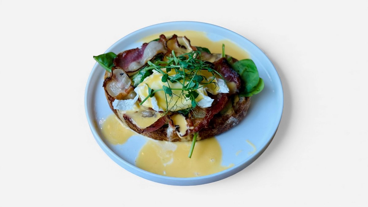 Tradičný chlieb vo vajičku, so slaninovým chipsom, tekutým cheddarom,