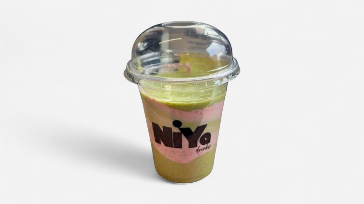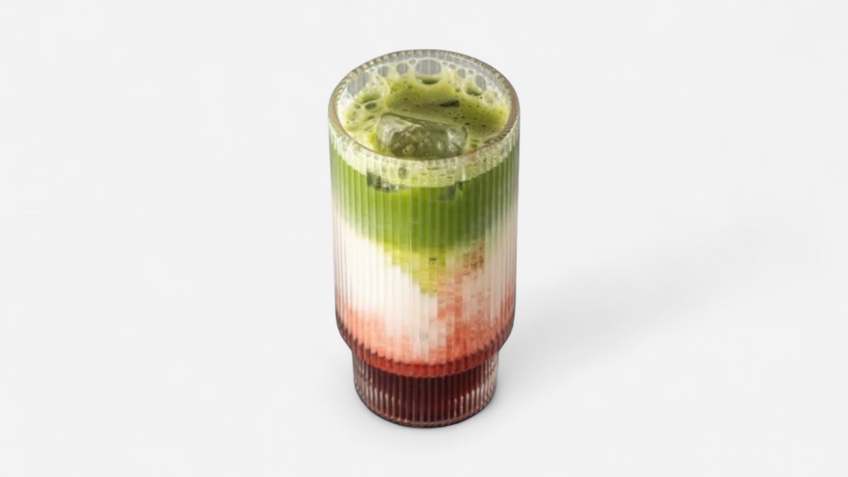 ceremoniálna matcha, mlieko podľa výberu, jahodové pyré 2g, 300/330 ml