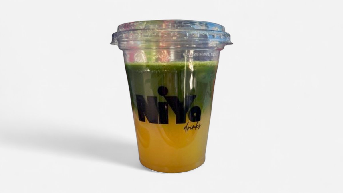 ceremoniálna matcha, 100% pomarančový džús 2g, 300 ml