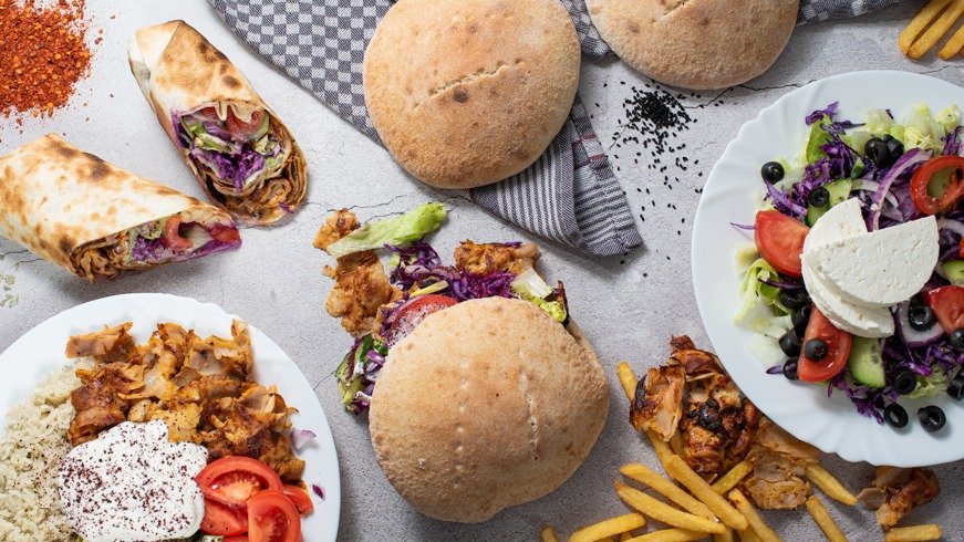 Kebab v žemli + hranolky hranolky, žemľa, kuracie mäso, dresing, kapusta, cibuľa, rajčina, uhorka, kukurica 500g / 1,3,6,7,10,11