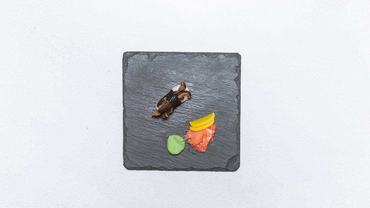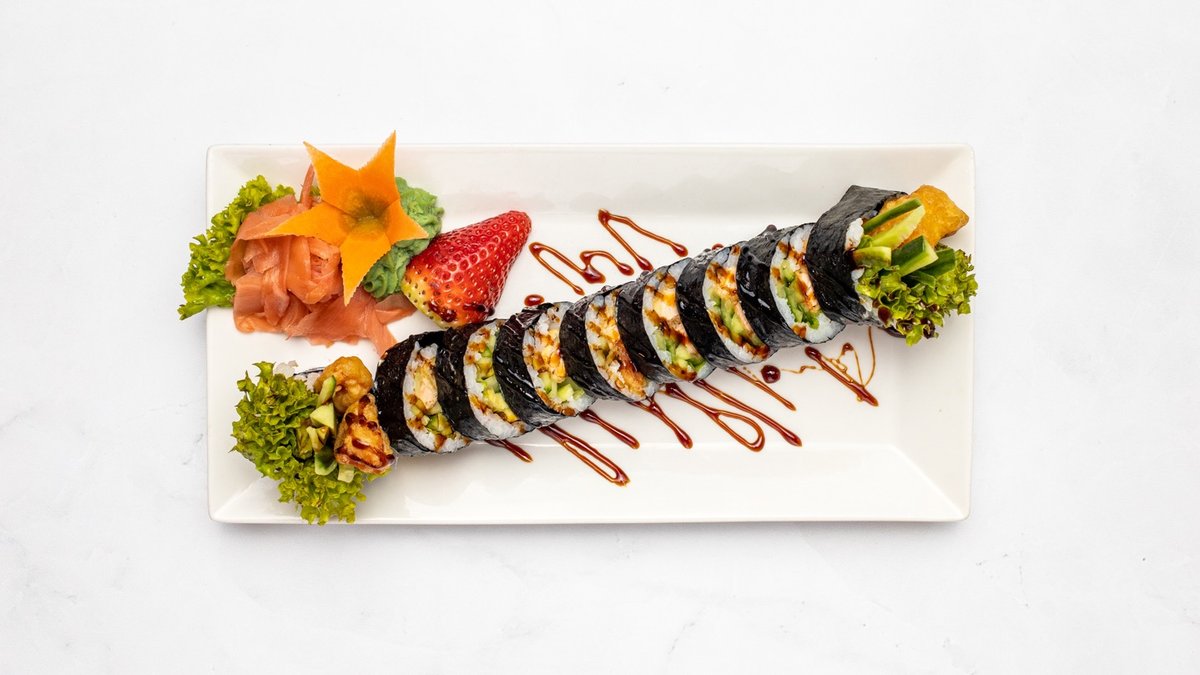 jednozložkové sushi v tvare rolky, rolka v riase nori je plnená zeleninou a nakrájaná na 6 ks 100g / obsahuje: 11