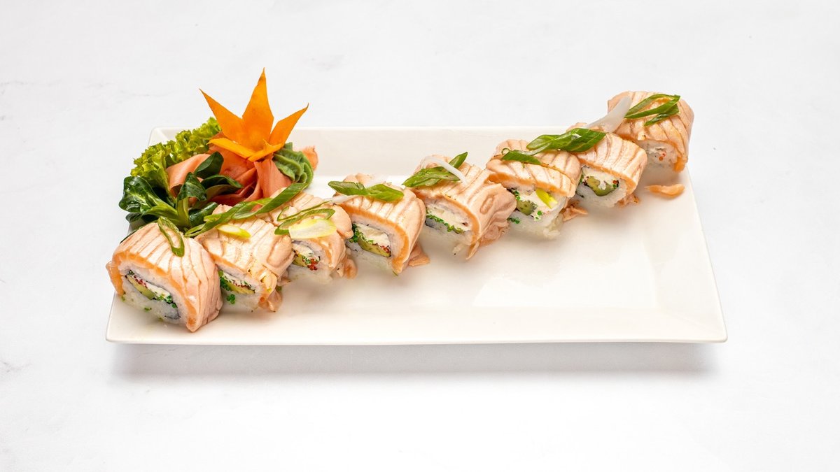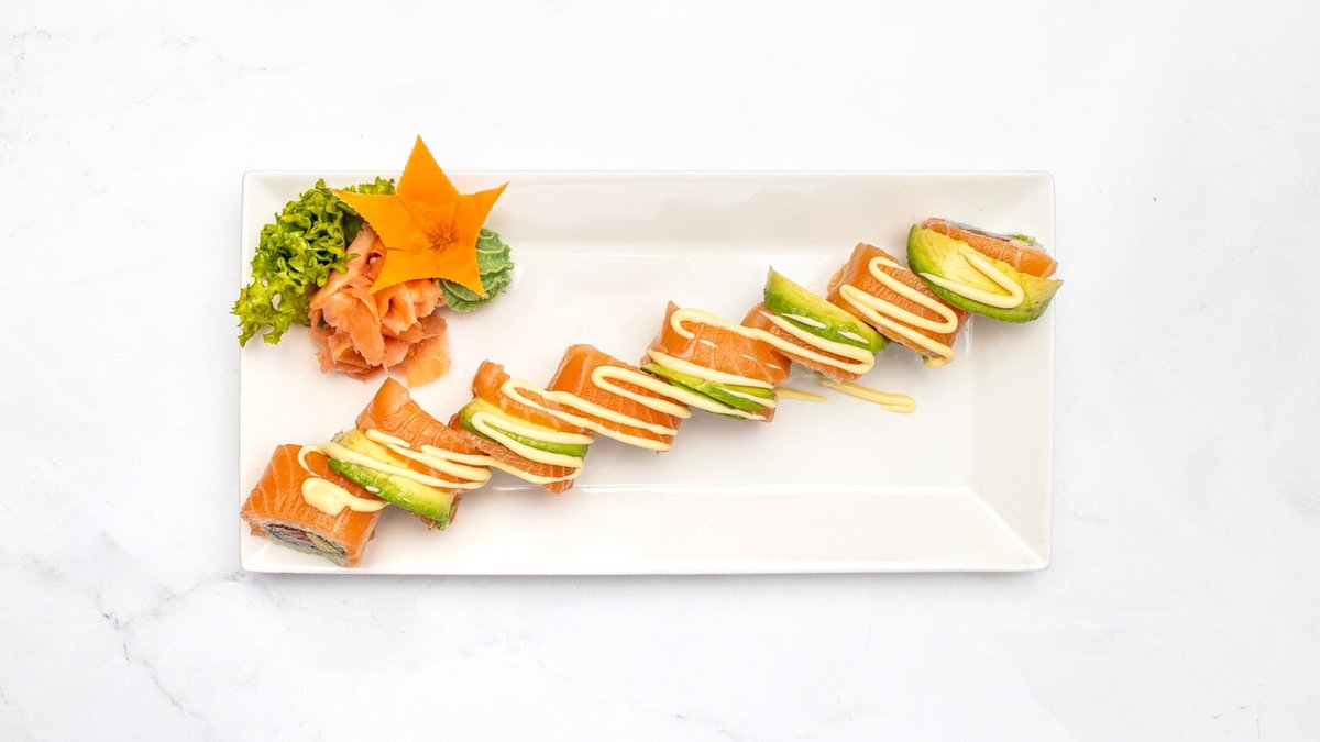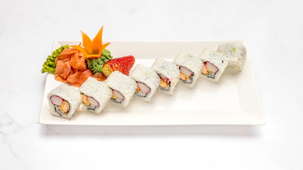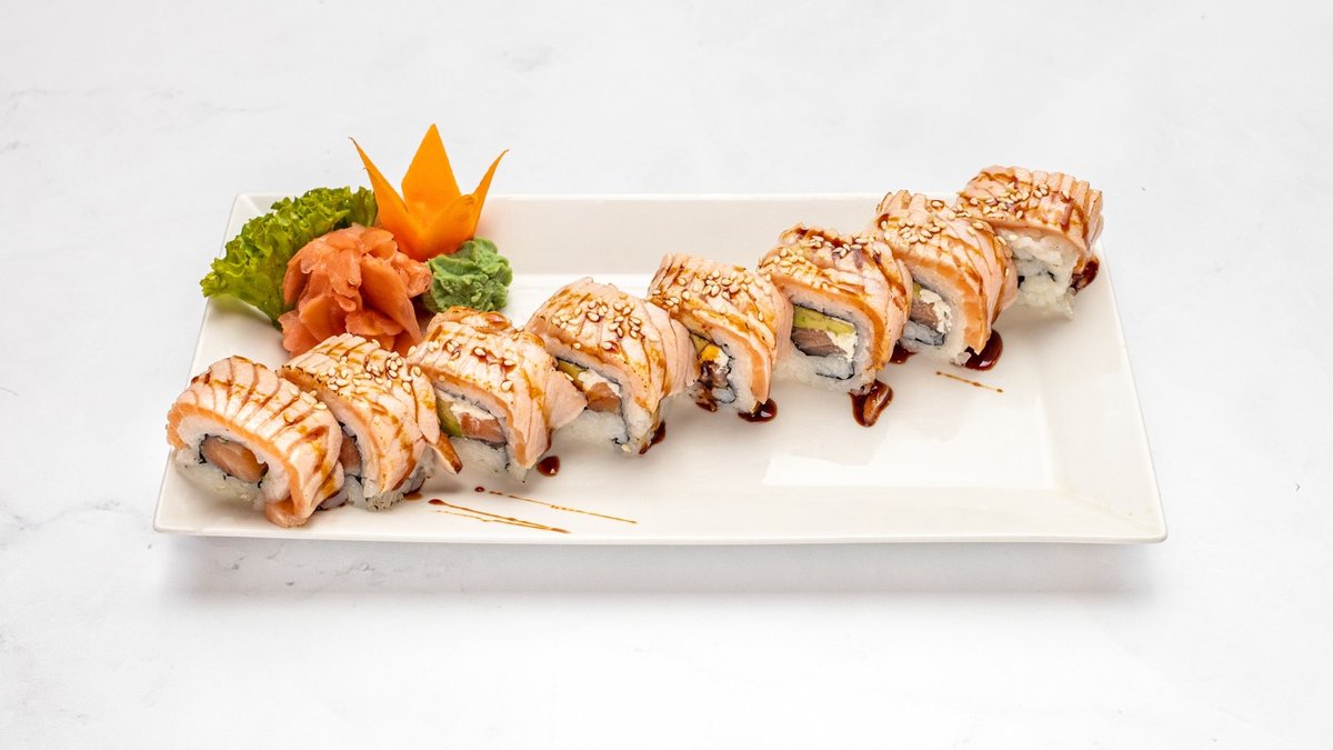 Sushi rolka s lososom v tempure, avokádom, chilli korením, majonézou a sakura omáčkou. 8 ks / obsahuje: 1,3,4,6,10,11