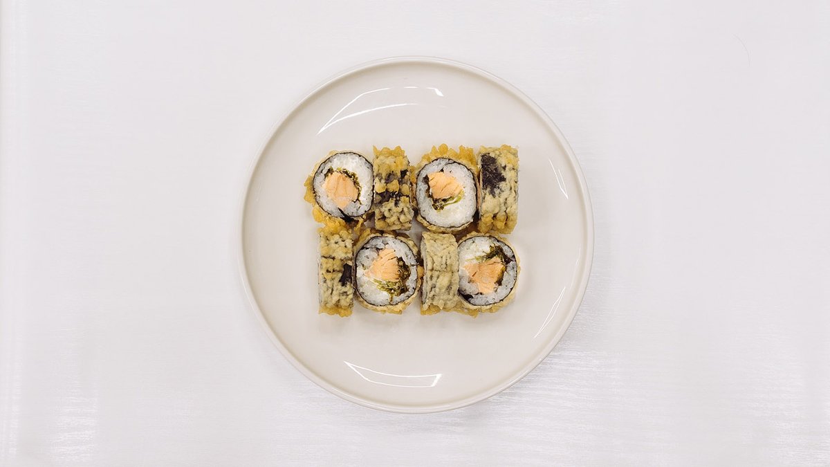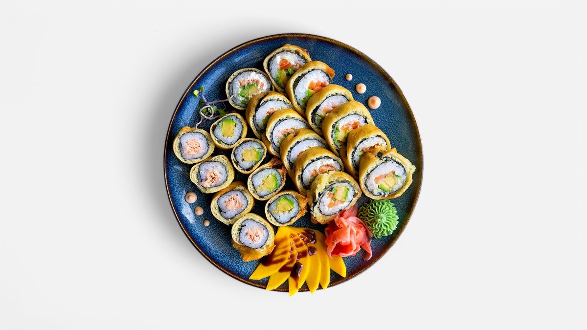 8ks uramaki (losos, avokádo, chrumkavá cibuľka, syr Philadelphia) 4ks maki tempura sake (losos, Sakura omáčka, japonská majonéza) 4ks maki tempura avocado (avokádo, Sakura omáčka, japonská majonéza) /16ks/