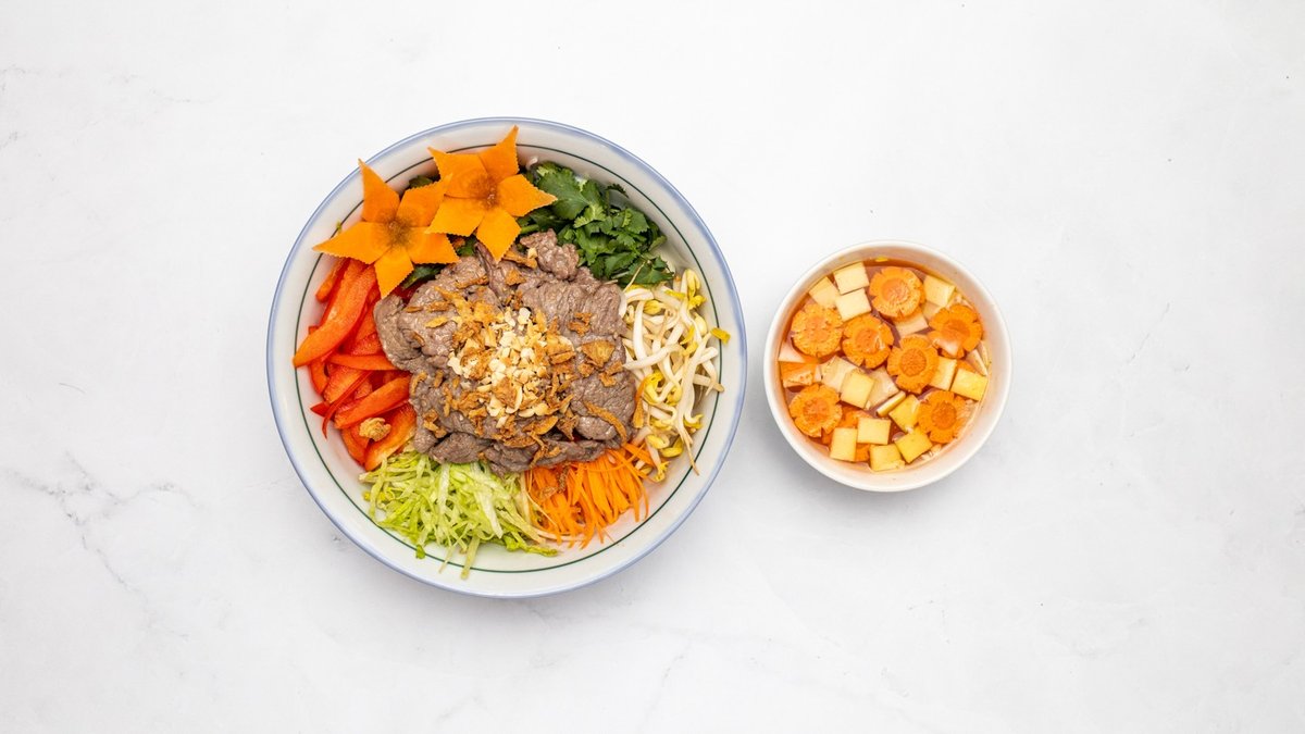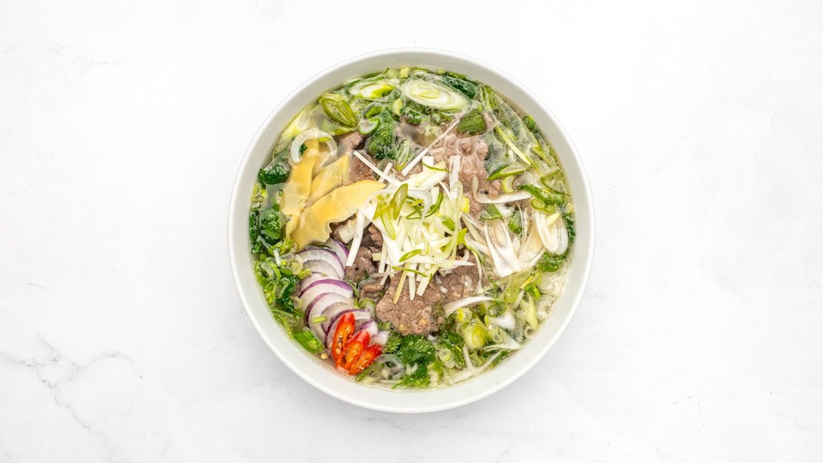 tradičný vietnamský vývar s ryžovými pho rezancami, dochutený bambusovými výhonkami a jarnou cibuľkou. Variant: pho bo / pho ga / pho chay 0,7l / 4, (pho chay - alergén 6)