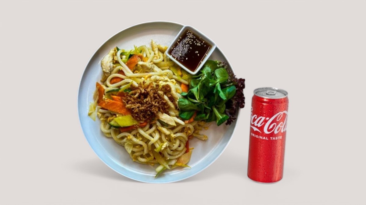 Udon rezance, vajcia, zelenina,chrumkavá cibuľka. 200g, na výber z viac variant + nápoj