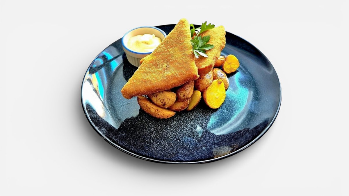 130 g Vyprážaný syr, varené zemiaky s vňaťou, domáca tatárska omáčka (1,3,7) + polievka (v cene)
