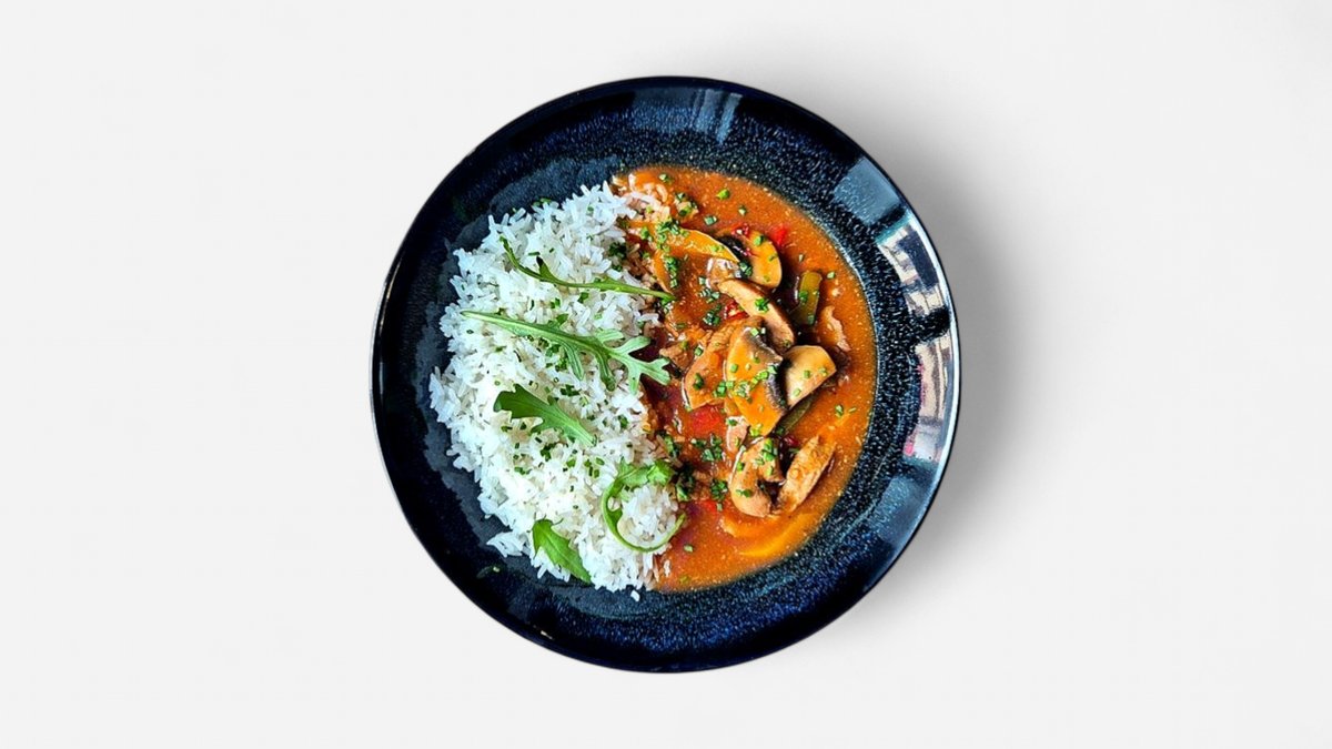 130 g Jemne pikantné soté z bravčovej panenky, ryža + polievka (v cene)