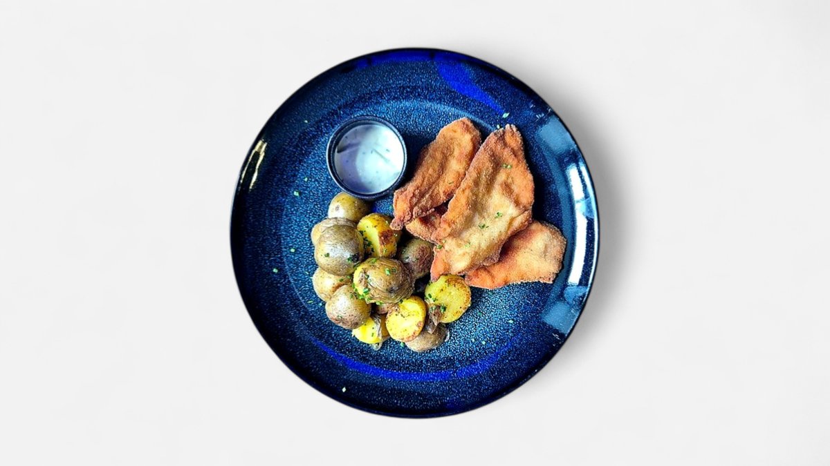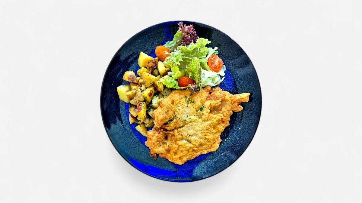 130 g Mini rezníky z bravčovej panenky, šmykľavý zemiakový šalát (1,3,7) + polievka (v cene)