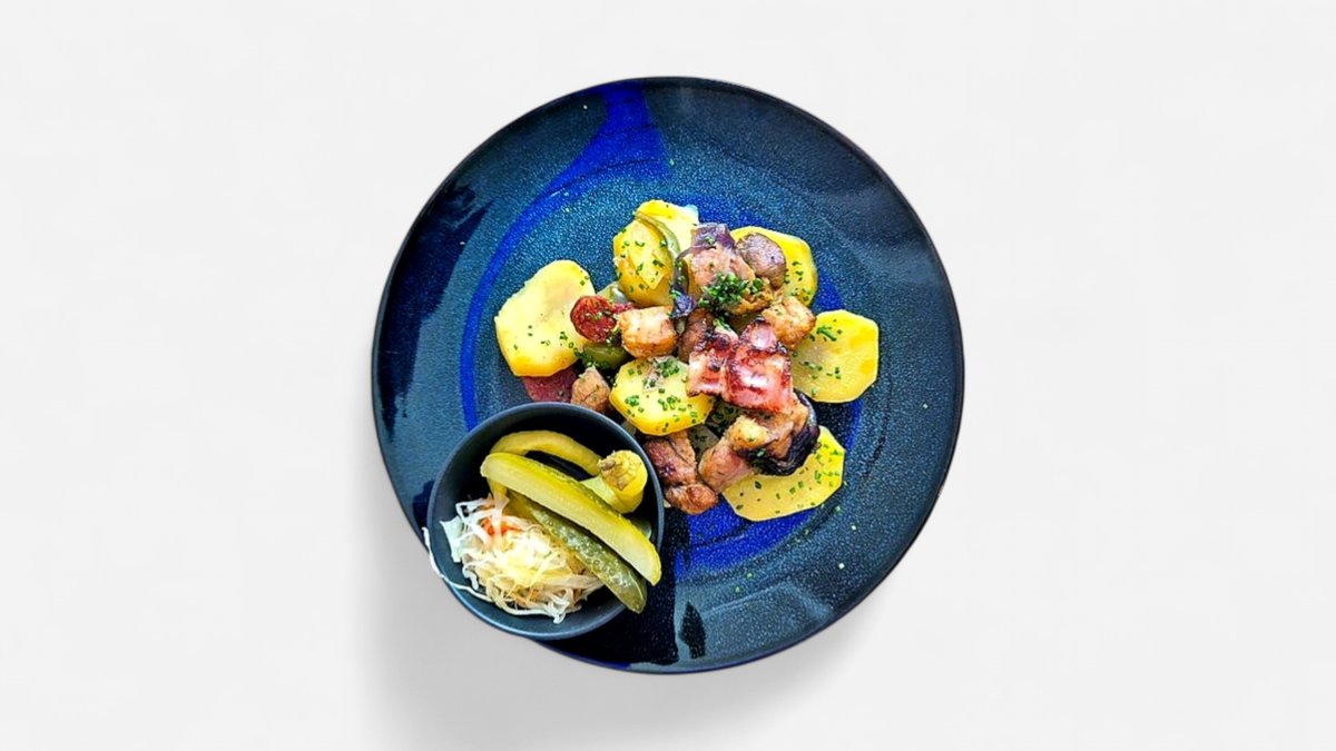 130 g Bravčová živánska, zemiaky, kyslá obloha + polievka (v cene)