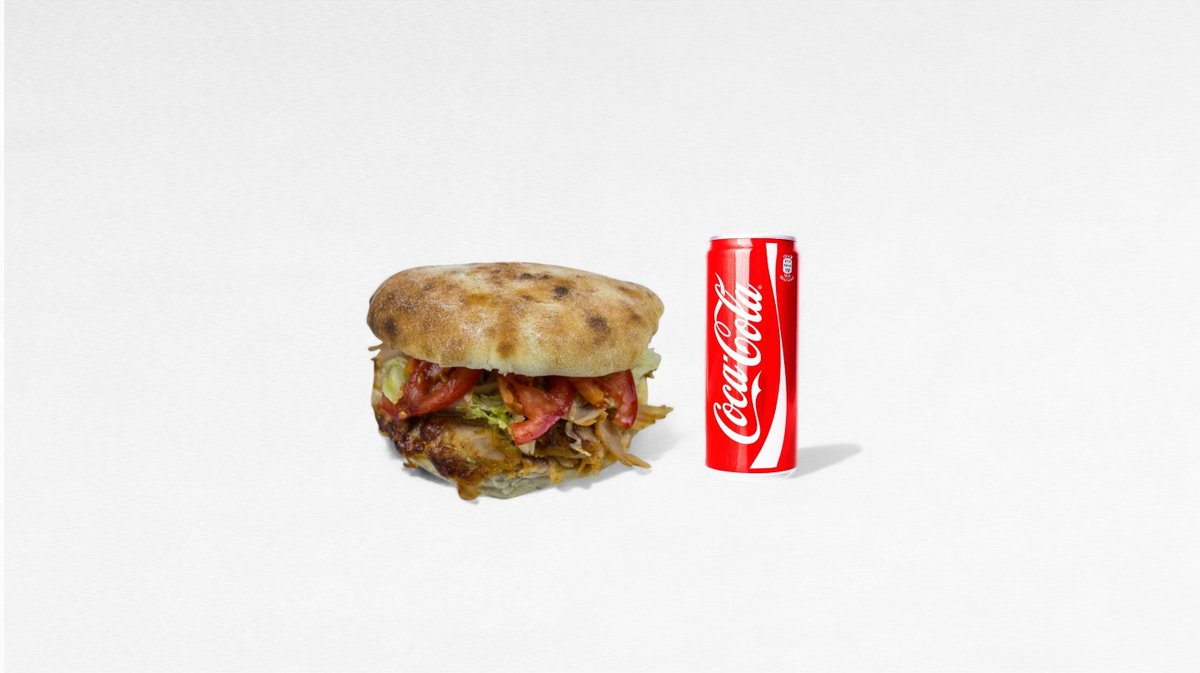 Kebab, žemľa, hranolky, cola/ayran