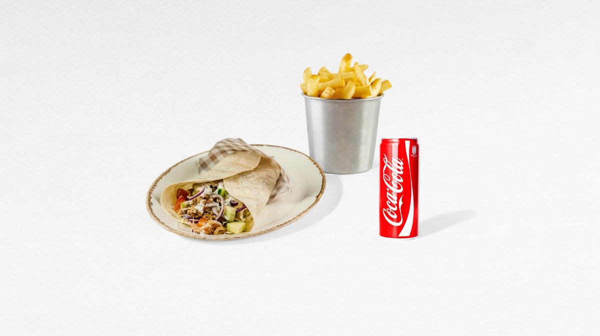 Kebab, yufka, hranolky, cola/ayran