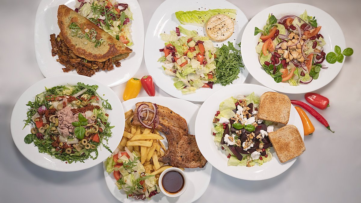 Bohatý výber čerstvých a zdravých šalátov a chutná ponuka hlavných jedál.