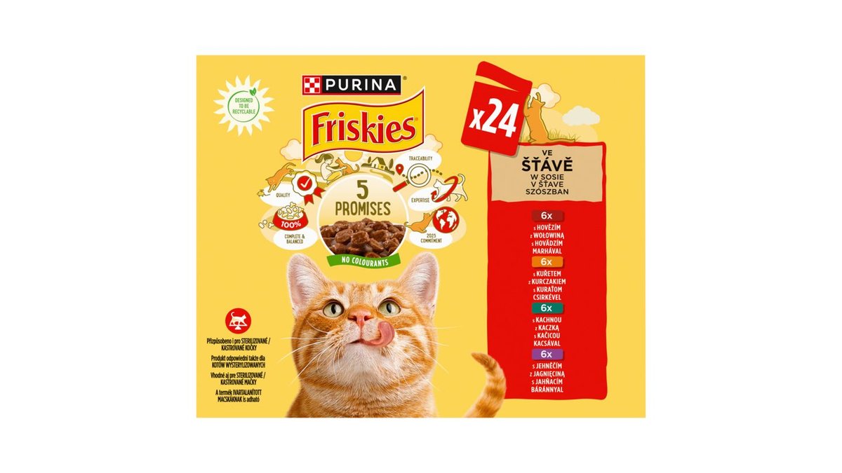 PURINA FRISKIES multipack s kuraťom, hovädzím, jahňacím, kačicou v šťave 24 x 85 g