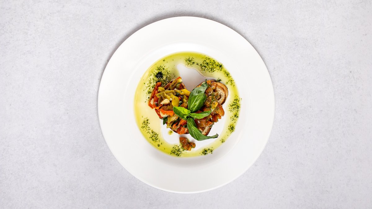 bruschetta, paradajky, mozzarella di bufala, bazalkové pesto, prosciutto crudo, parmezán 250g /obsahuje: 1, 7, 8