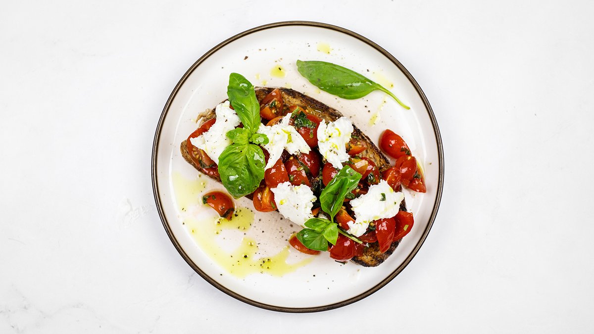 BUSCHETTA CON BUFALA, POMODORINI E PROSCIUTTO CRUDO