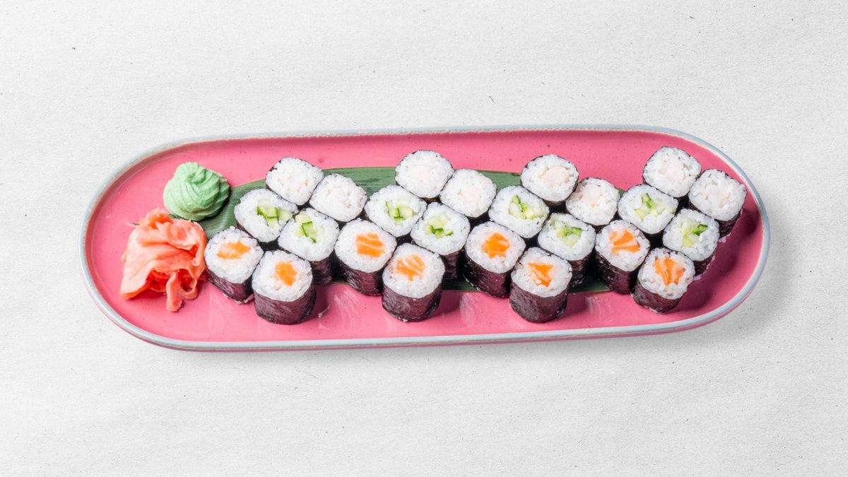 maki losos 6ks, maki avokádo 6ks, nigiri losos 4ks, zeleninová rolka 5ks futomaki lososová rolka 5KS obsahuje: 1,2,4,7