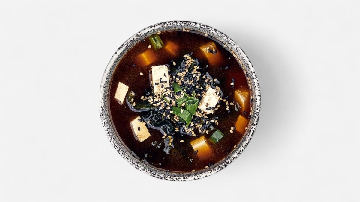 silný rybací vývar, tofu, wakame (pálivé)