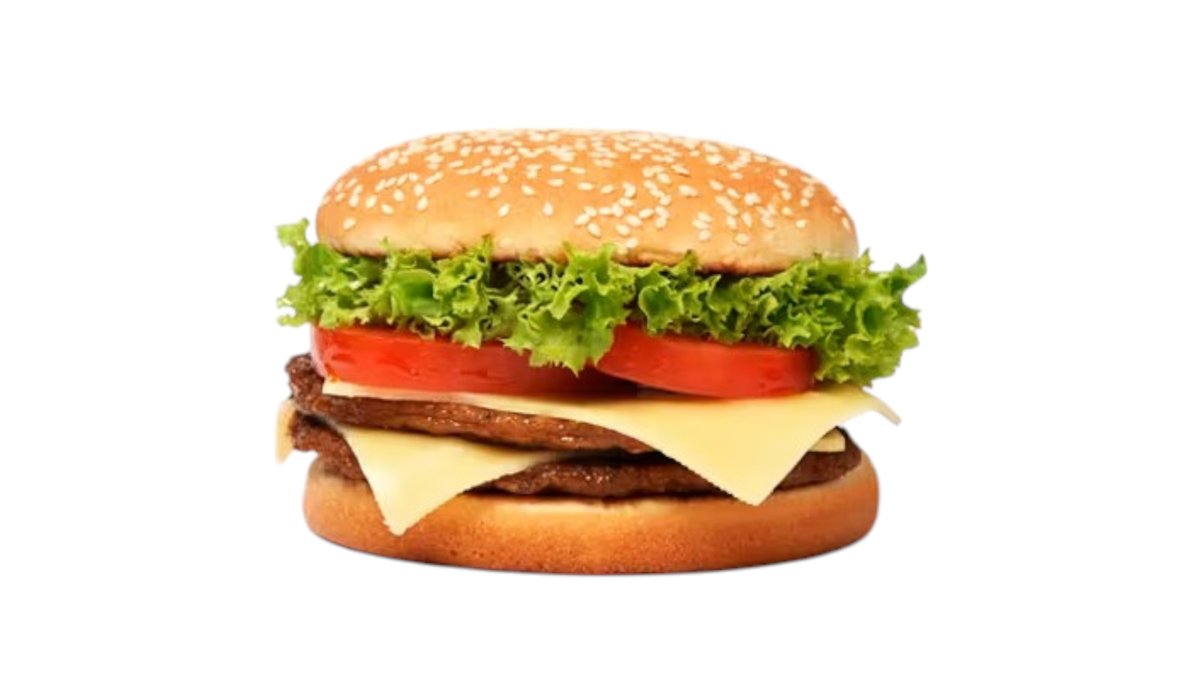 200g mäsovo - syrový burger, 6ks chicken nuggets, 145g hranolky, nápoj