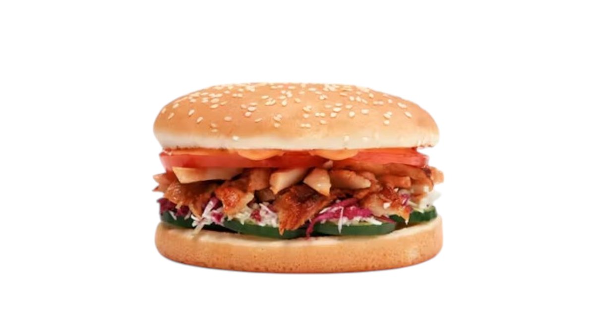 200g 2 plátky mäsa, paradajka, syr, čerstvá cibuľka, pikantná omáčka