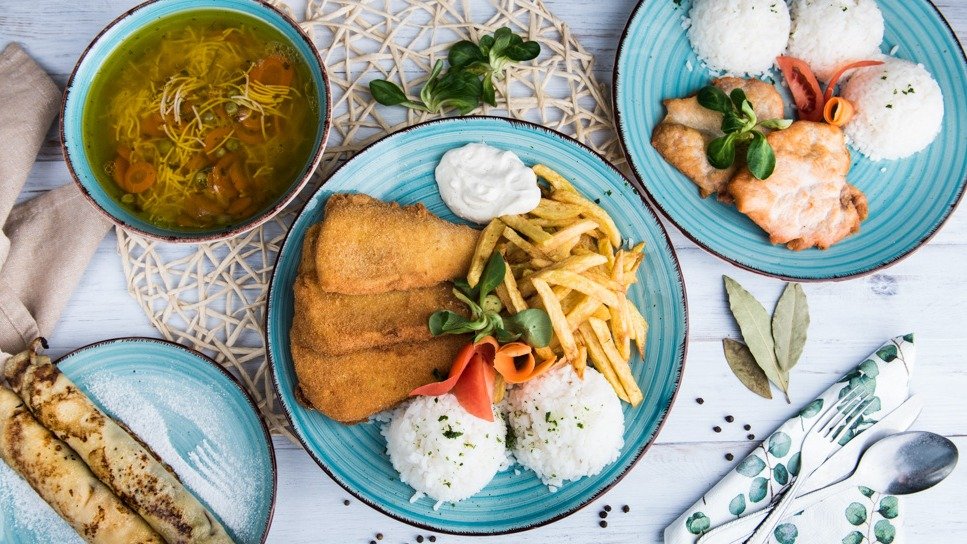 Reštaurácia ponúkajúca tradičné jedlá počas celého dňa.