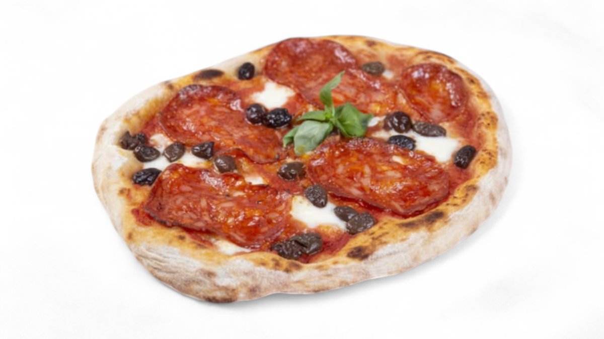 Paradajková omáčka, Mozzarella, Gentile saláma, extra panenský olivový olej. 320 gr / obsahuje: 1,3,7