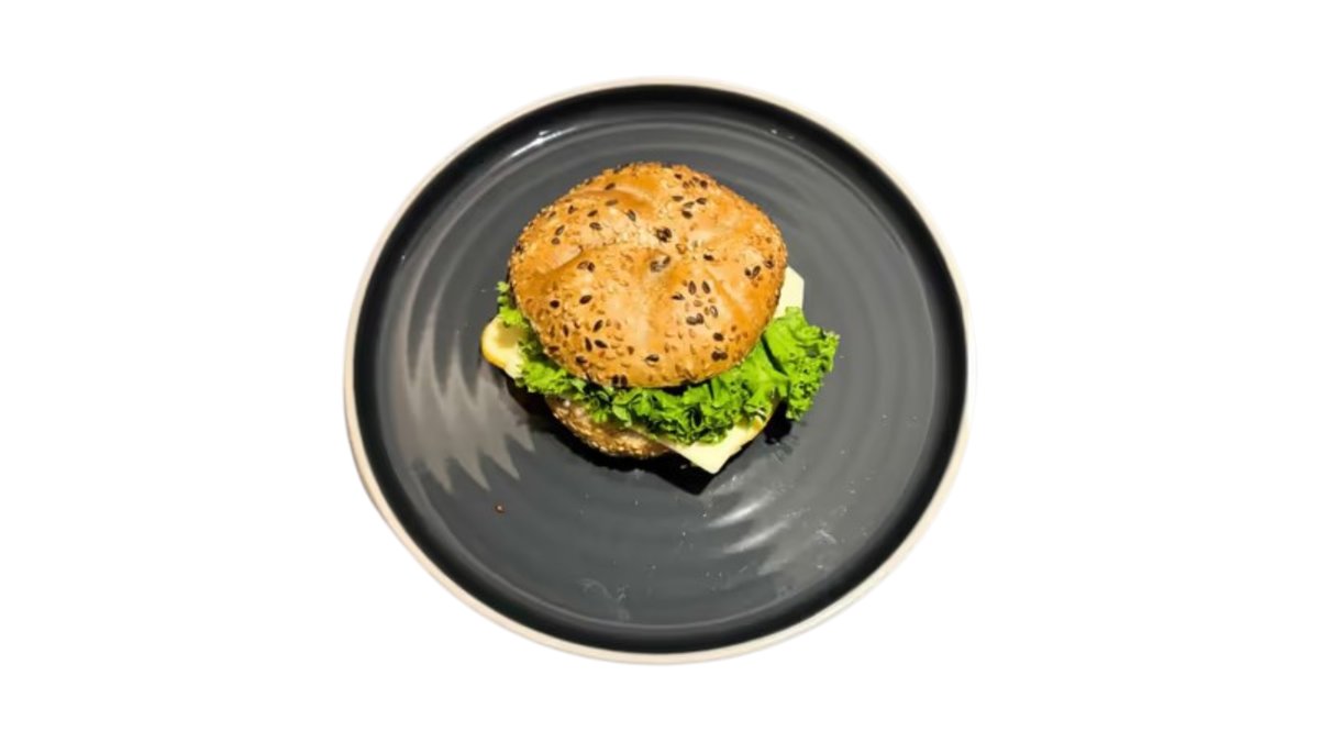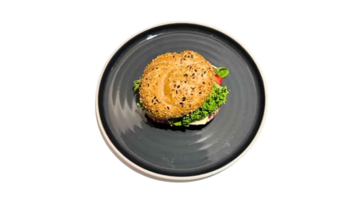 Čerstvá zrnná žemľa od pekára, bánovecká nátierka, syr, šunka, čerstvá zelenina