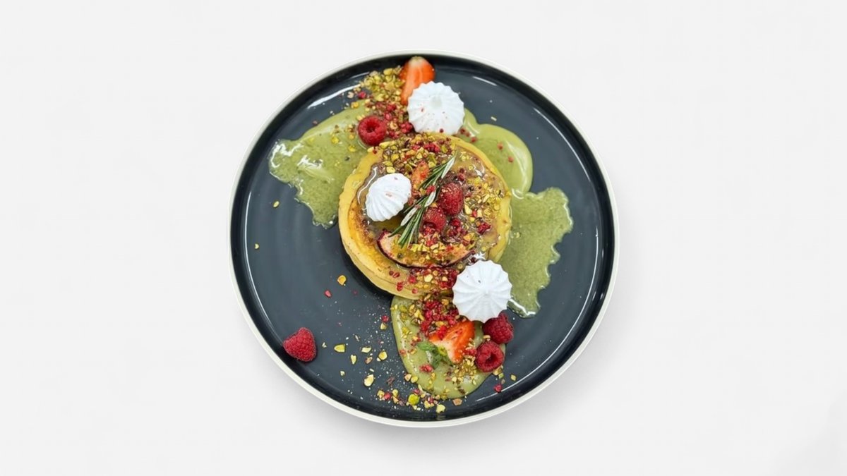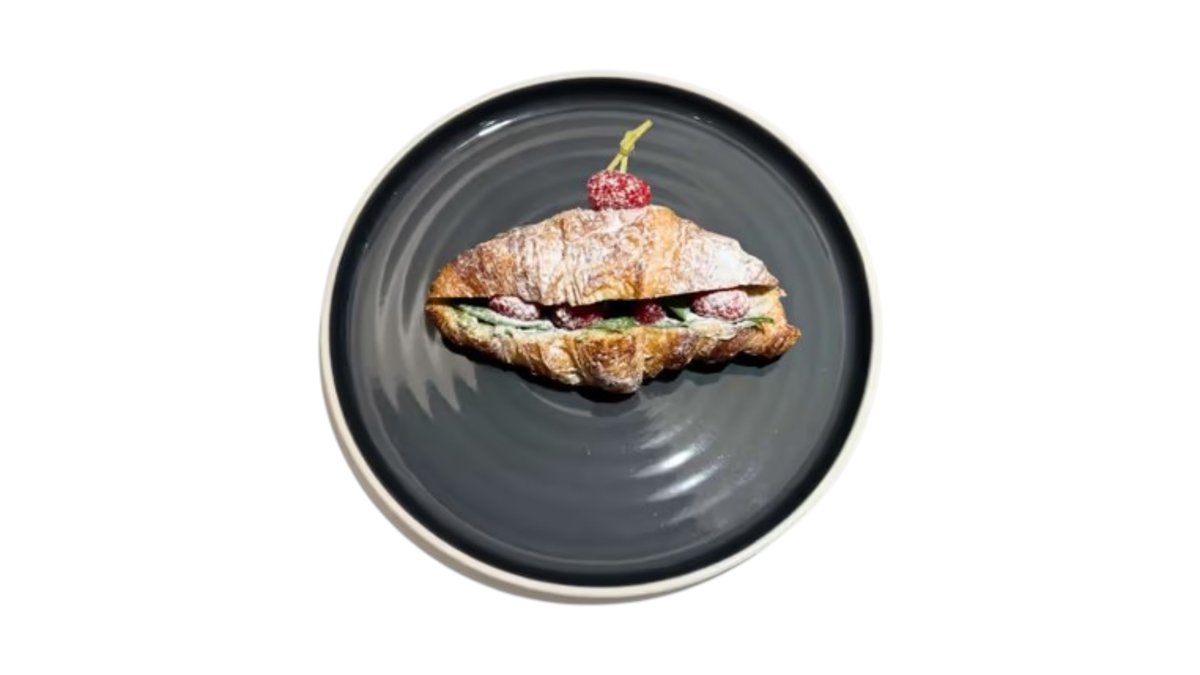 Croissant plnený pistáciovým krémom a čerstvými malinami