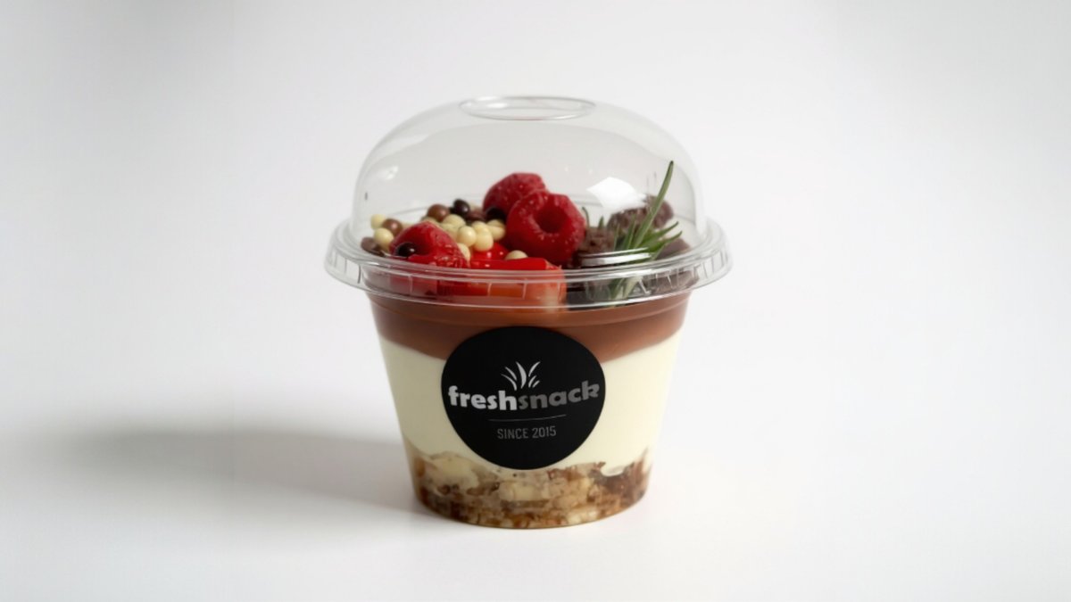 Jogurt, ovocie, ganache , keksík
