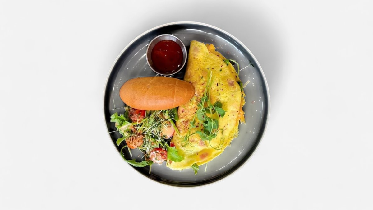 Omeleta z 2 vajíčok Bravčová šunka Paprika, Cheddar, Chilly