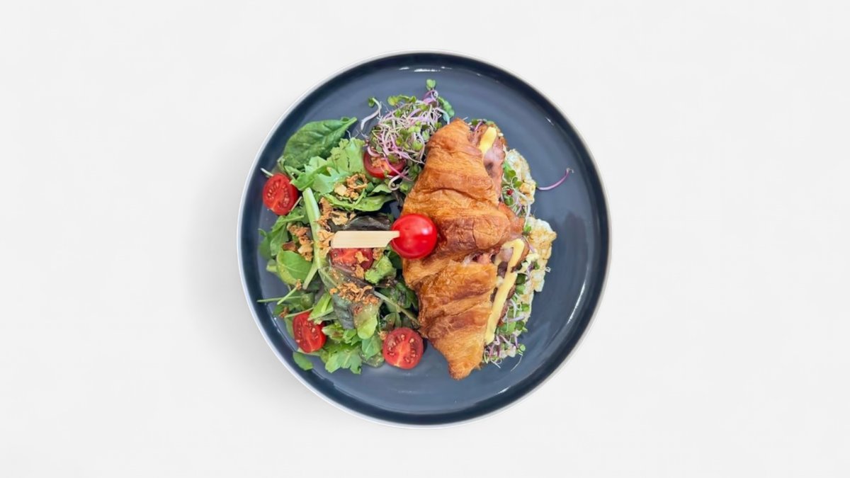 Croissant plnený smotanovou nátierkou, pestom, šunkou, syrom a zeleninou