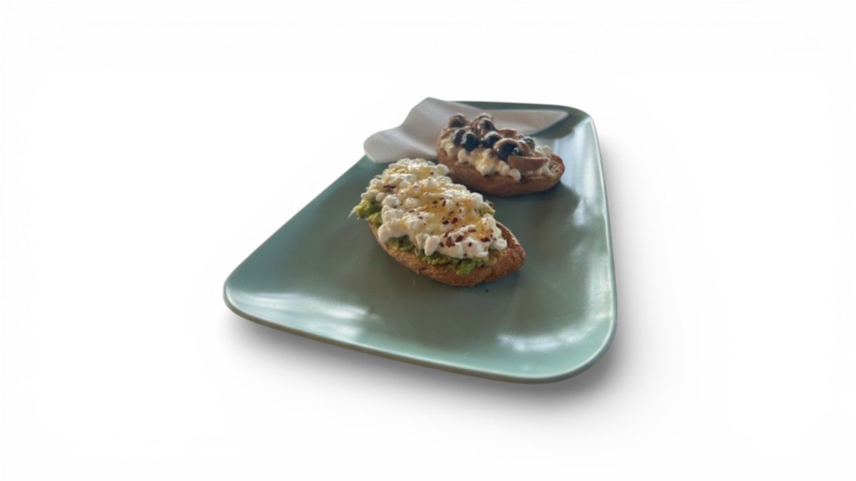 Opečený kváskový chlieb s avokádom, cottage cheese, medom a chilli korením