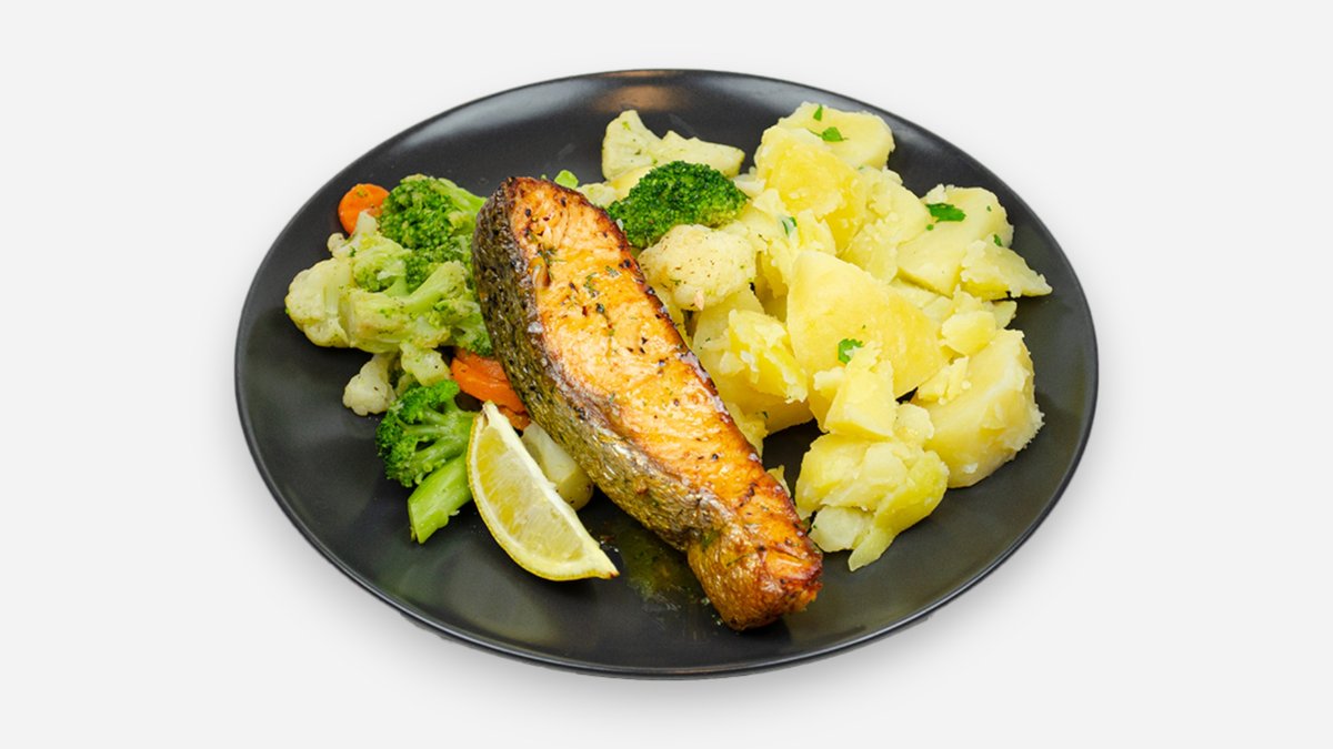 Losos na grile, pečené zemiaky, prírodná omáčka
