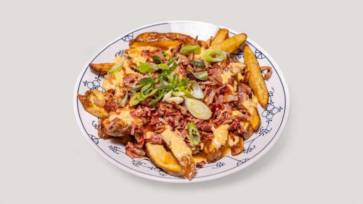 hranolky, cheddar, slaninka, jarná cibuľka 300g / obsahuje: 1, 3, 10