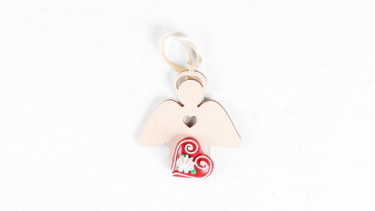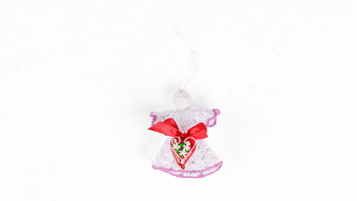 Angel z idrijsko čipko in lectovim srčkom (4x7 cm)