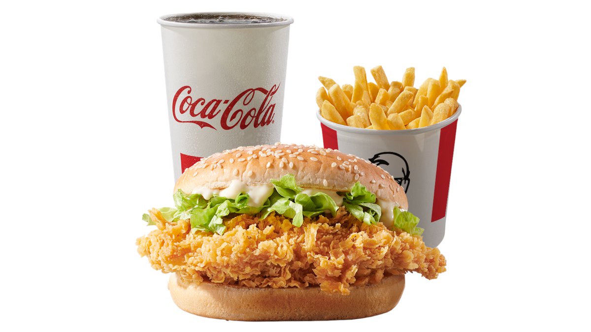 Kentucky Gold Fillet burger, veliki krompirček in velika pijača po izbiri.