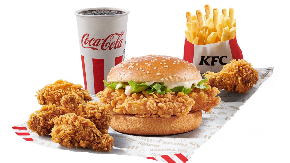 Kentucky Gold Fillet burger, srednji krompirček, srednja pijača po izbiri in 5 hot wings