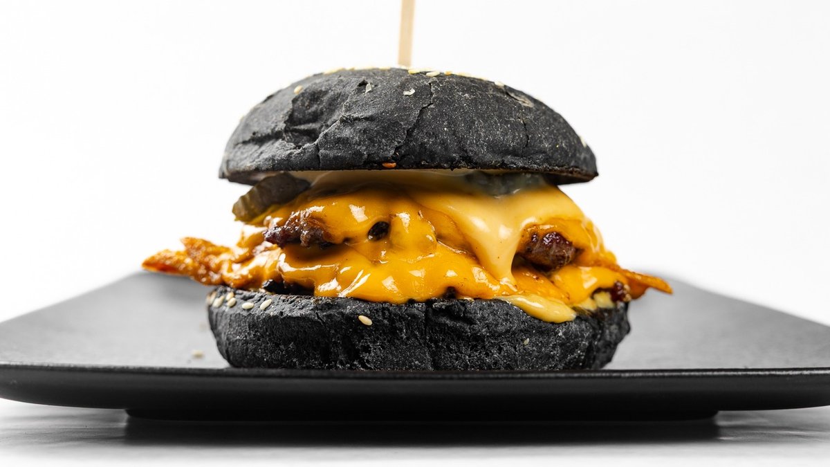 Črna bombeta, 2x smash polpet (70 g), cheddar sir, omaka, sladko kisle kumarice V ceno jedi je všteto doplačilo 0.50 eur za biorazgradljivo embalažo