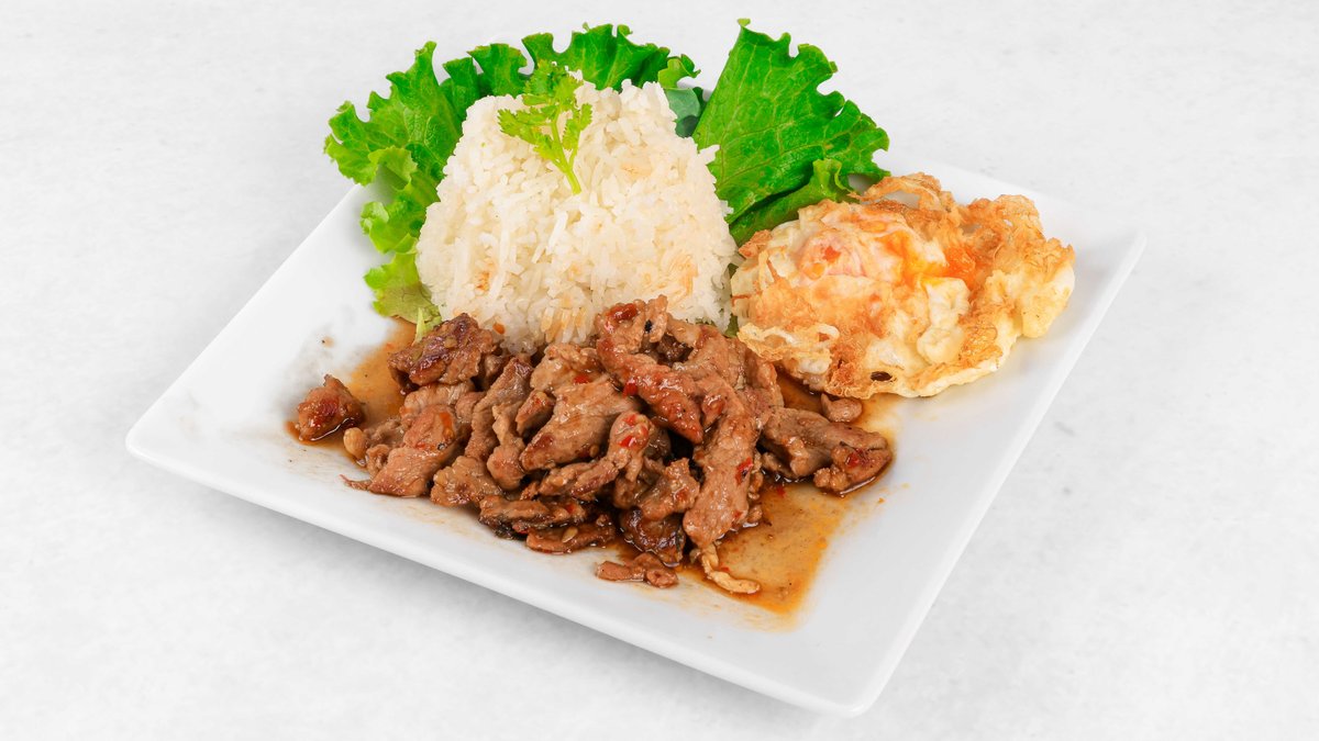 Bambus, tajska holy bazilika, čili, ostrigina omaka, sojina omaka, svinjina, riž V ceno jedi je všteto doplačilo 0.50 eur za biorazgradljivo embalažo