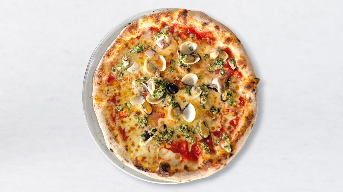 Pelati, mozzarella, morski sadeži, tržaška omaka, oliva V ceno jedi je všteto doplačilo 0.50 eur za biorazgradljivo embalažo