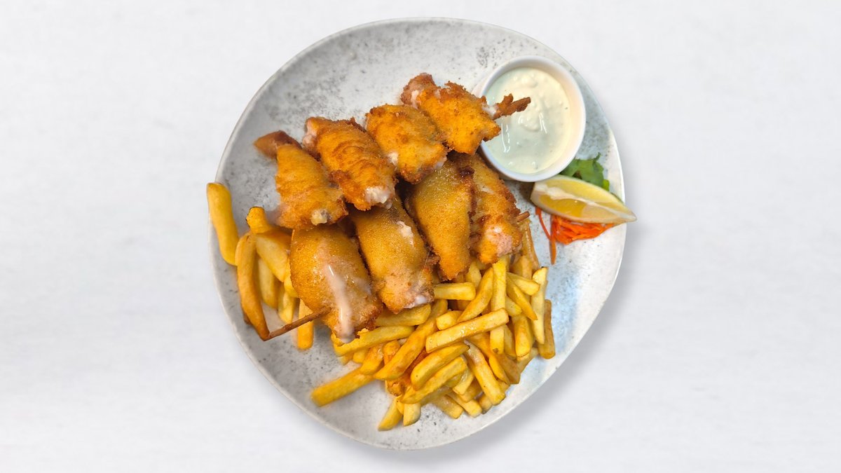 3x file brancina, 5x ocvrte rakove klešče, 5x ocvrti rakci v pivskem testu, ocvrti lignji, 4x polnjeni lignji na žaru, 4x ocvrti polnjeni lignji, zelenjava na žaru, pečen mlad krompir V ceno jedi je všteto doplačilo 0.50 eur za biorazgradljivo embalažo