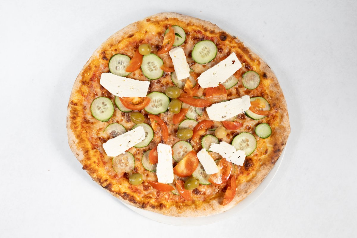 Paradižnikova omaka, sir, kumare, svež paradižnik, feta sir, olive V ceno jedi je všteto doplačilo 2 eur za biorazgradljivo embalažo
