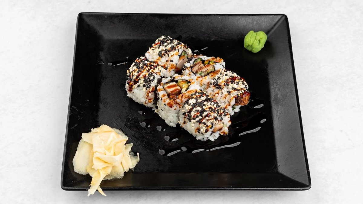 6x crispy duck uramaki, 6x crispy chicken uramaki Jed vključuje sojino omako in palčke