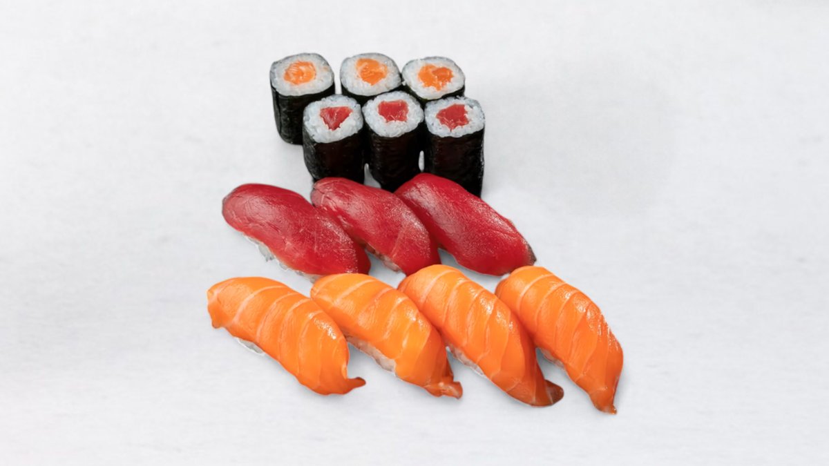 6x losos maki 6x tuna maki 1x losos nigiri 1x tuna nigiri